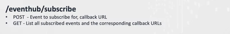 3. The blockchain calls are asynchronous. Once the transactions are added to the blockchain, the Event Hub pushes the signal to all interested subscribers through a callback endpoint.