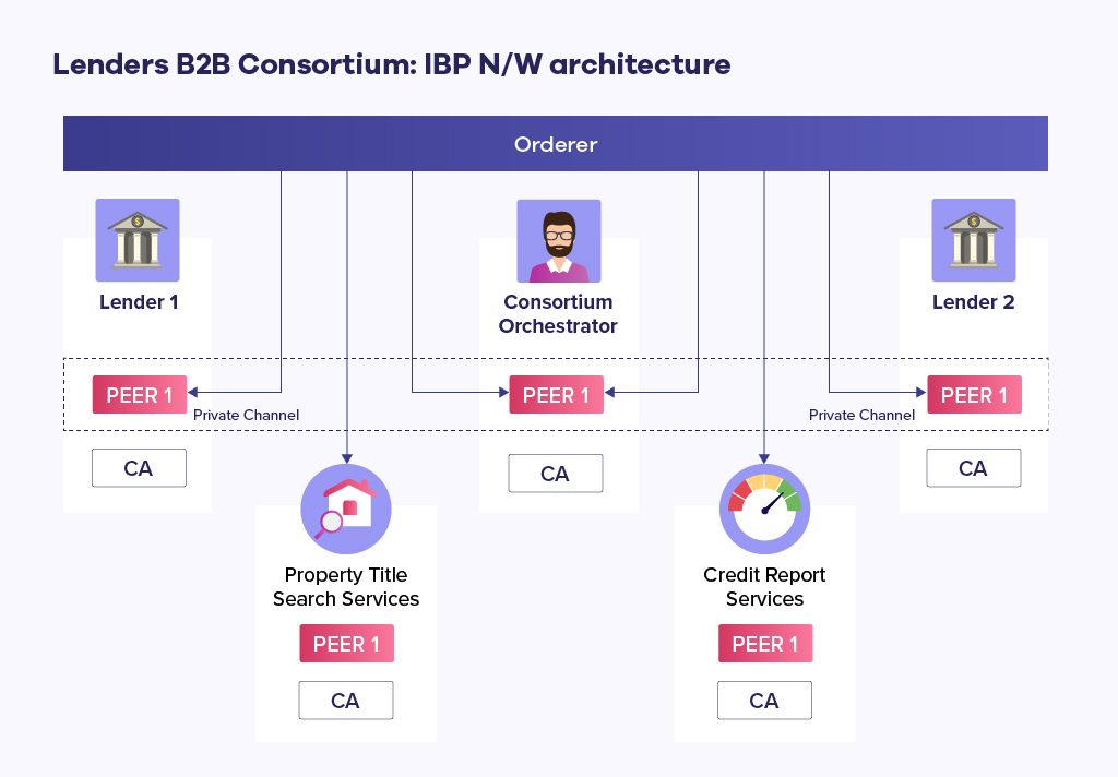 2. A private channel is established between the consortium orchestrator and lenders to securely share proposals, terms, and conditions of the loan with the applicant.
